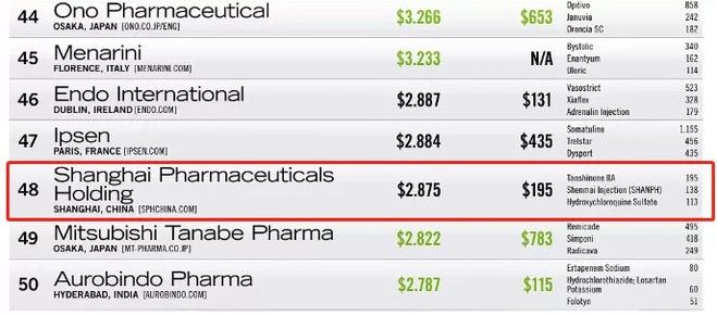 PharmExec從2000年首次發(fā)布至今已經(jīng)有21年歷史,具有較強(qiáng)公信力。繼去年榜單中首次出現(xiàn)中國藥企身影后,今年共有4家中國藥企上榜,分別為云南白藥、中國生物制藥、恒瑞醫(yī)藥和上海醫(yī)藥,在全球制藥行業(yè)中展現(xiàn)中國實(shí)力。